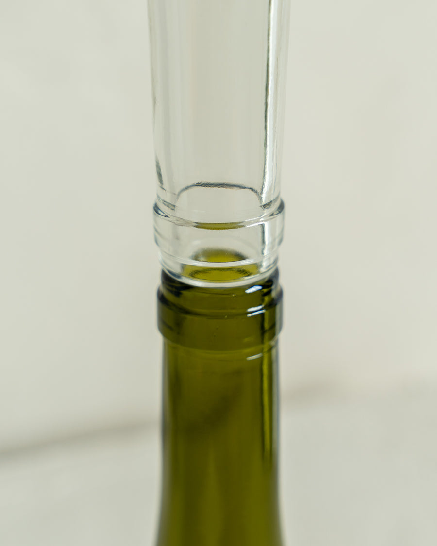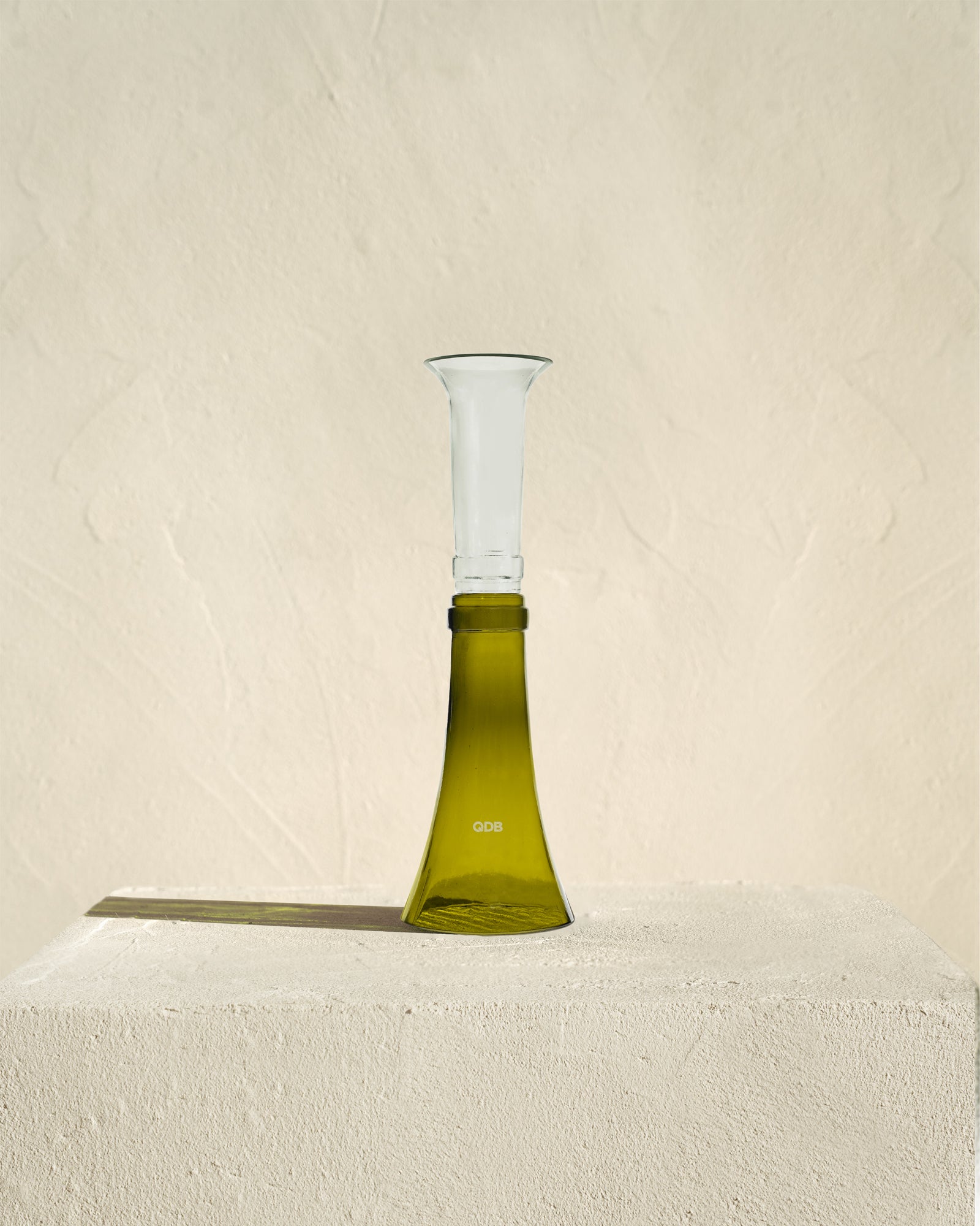 In this new edition, the candlestick is reinvented, renewed, and soaring. Developed in a tall version, it emerges from the meeting of two wine or champagne bottle necks. Available in several variations, the shapes and shades combine freely for a table setting full of character, responsible, and resolutely elegant.