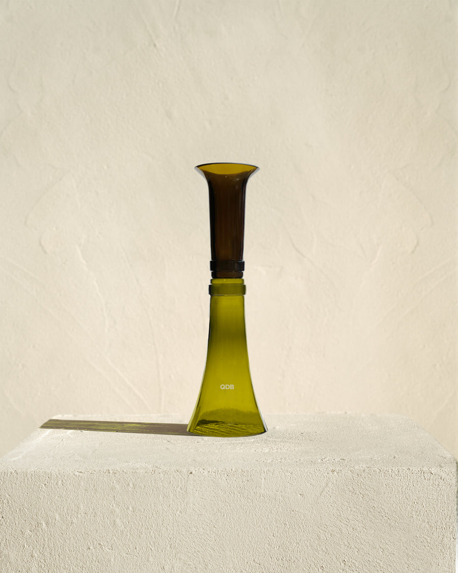 In this new edition, the candlestick is reinvented, renewed, and soaring. Developed in a tall version, it emerges from the meeting of two wine or champagne bottle necks. Available in several variations, the shapes and shades combine freely for a table setting full of character, responsible, and resolutely elegant.