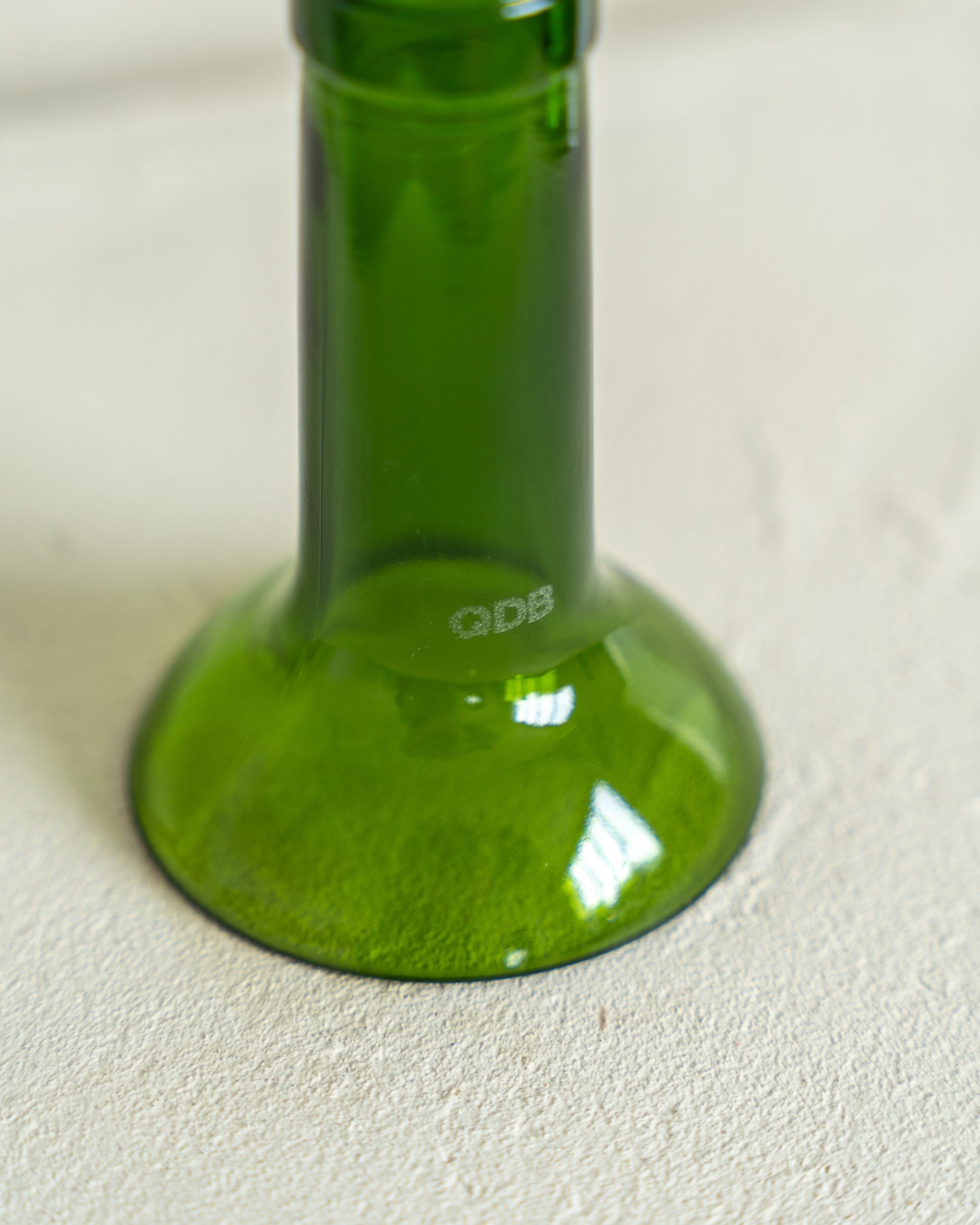 In this new edition, the candlestick is reinvented, renewed, and soaring. Developed in a tall version, it emerges from the meeting of two wine or champagne bottle necks. Available in several variations, the shapes and shades combine freely for a table setting full of character, responsible, and resolutely elegant.