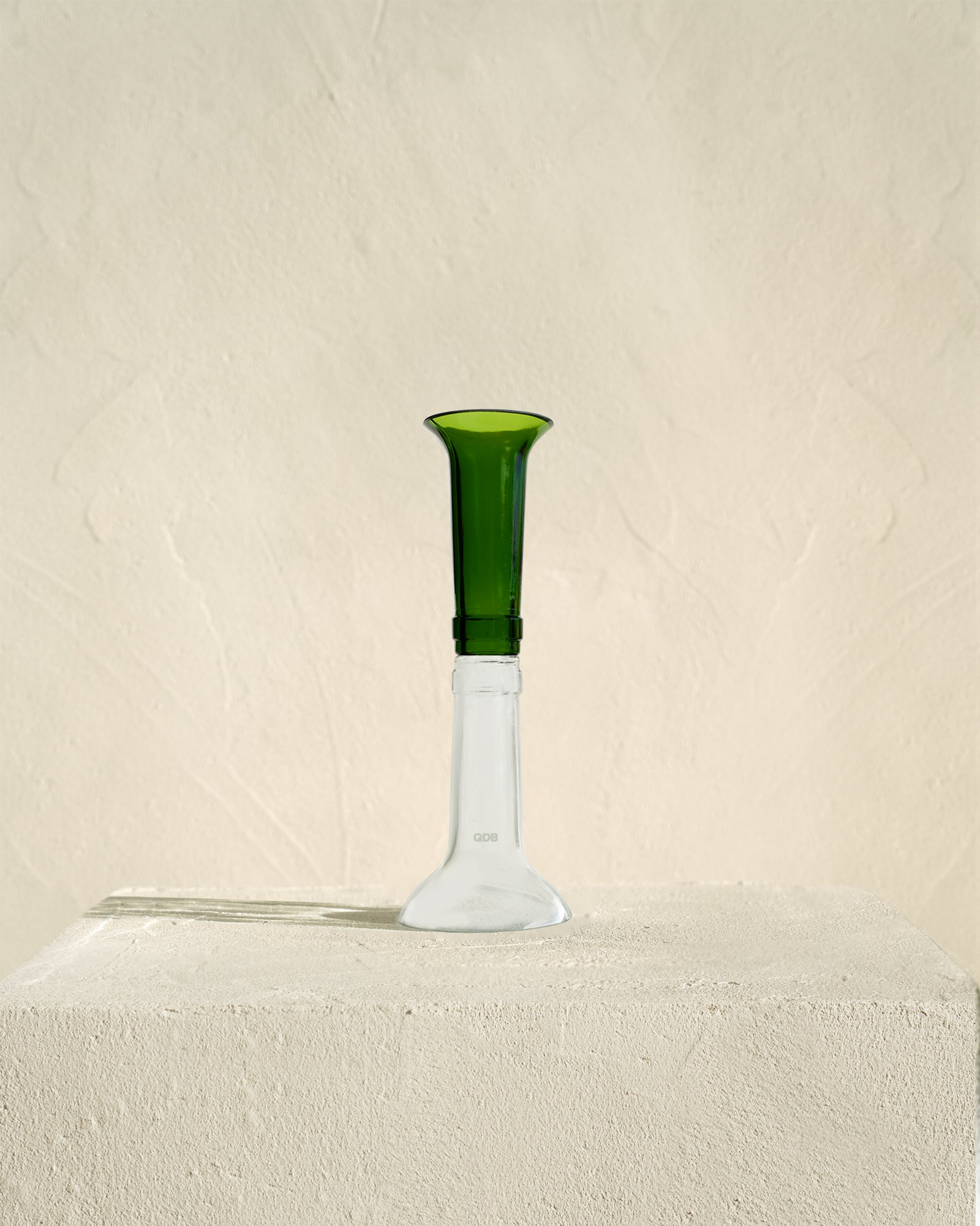 In this new edition, the candlestick is reinvented, renewed, and soaring. Developed in a tall version, it emerges from the meeting of two wine or champagne bottle necks. Available in several variations, the shapes and shades combine freely for a table setting full of character, responsible, and resolutely elegant.