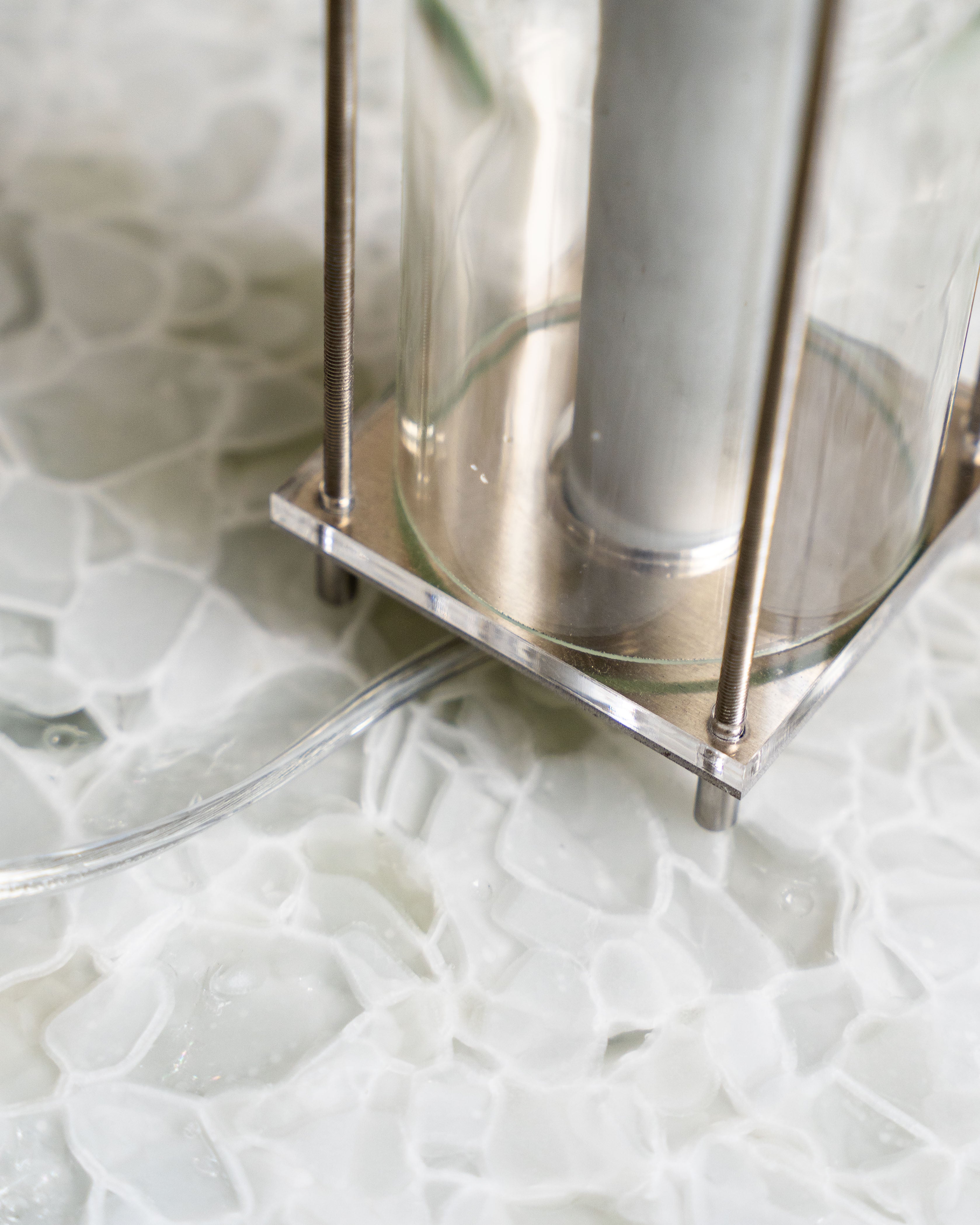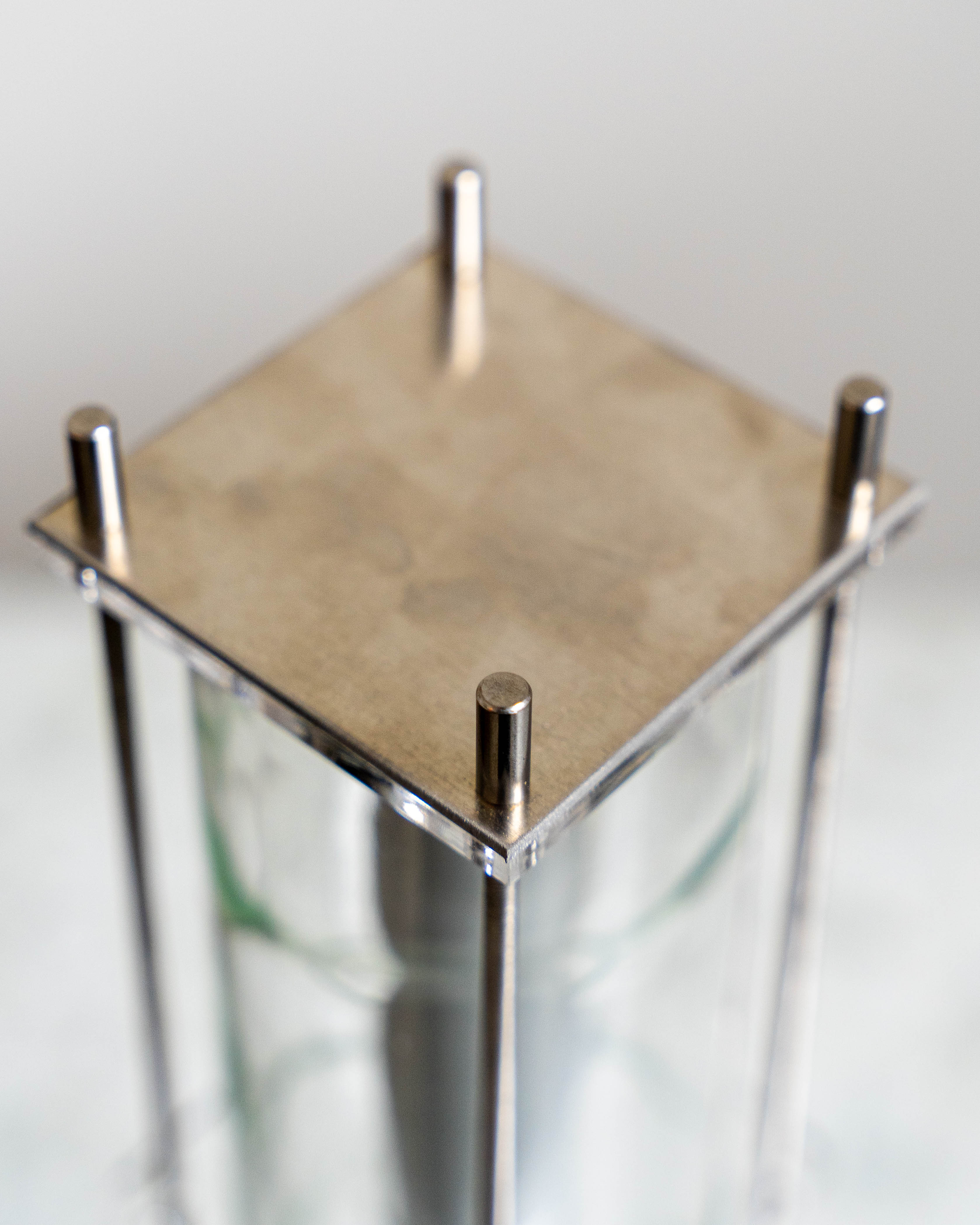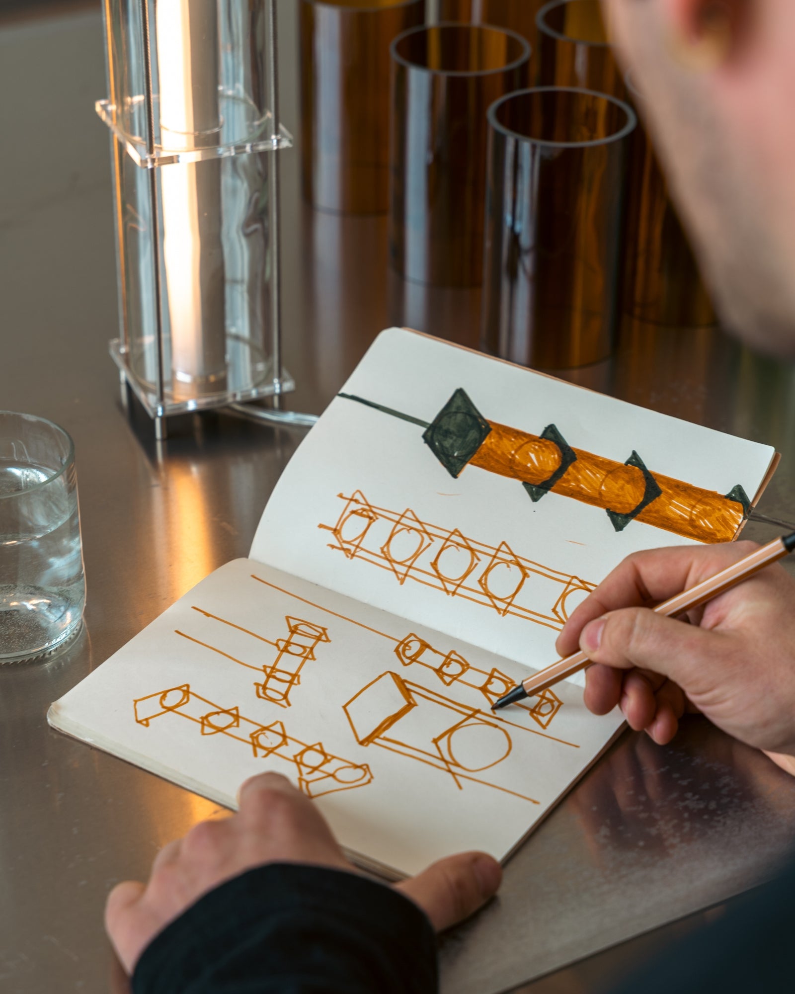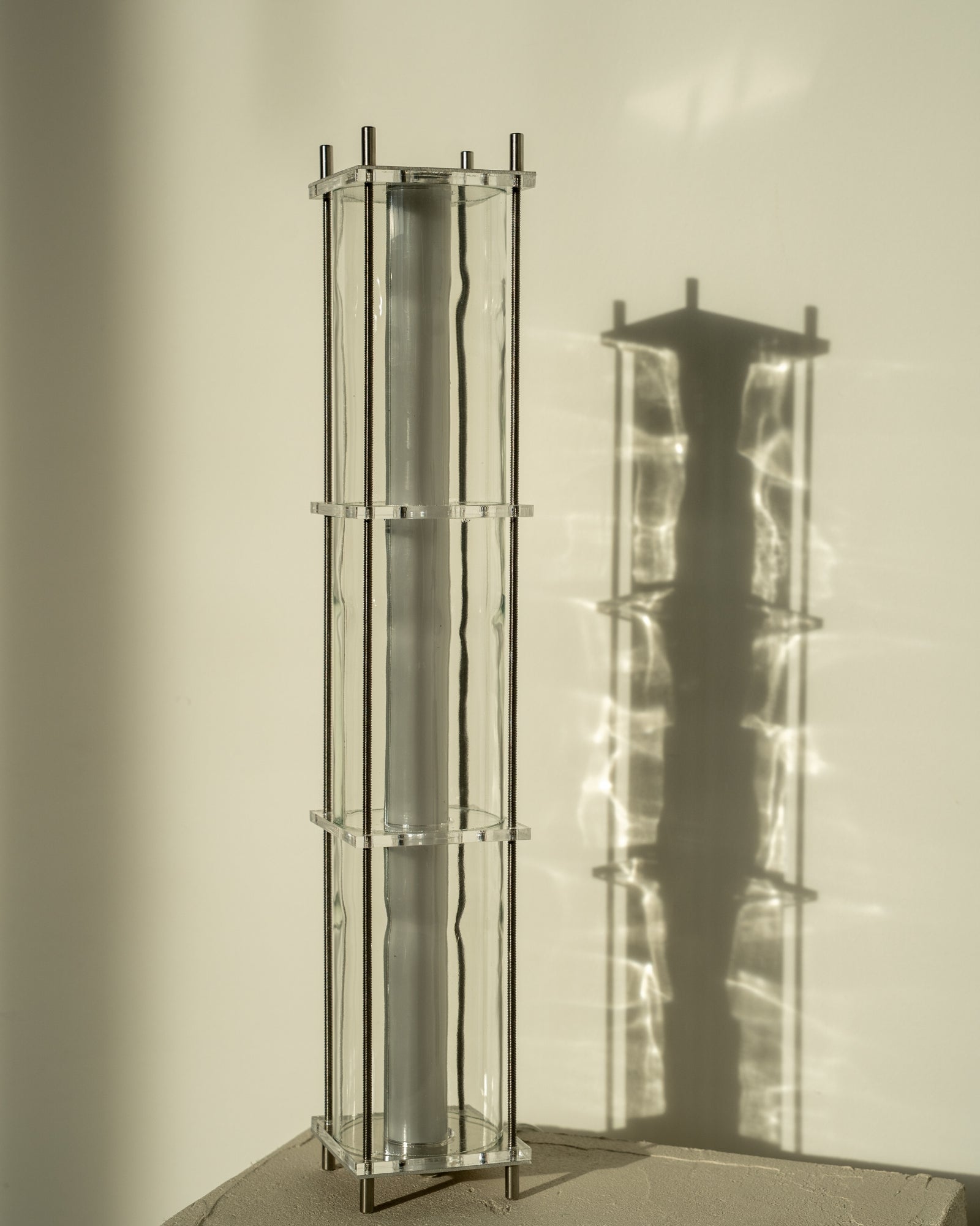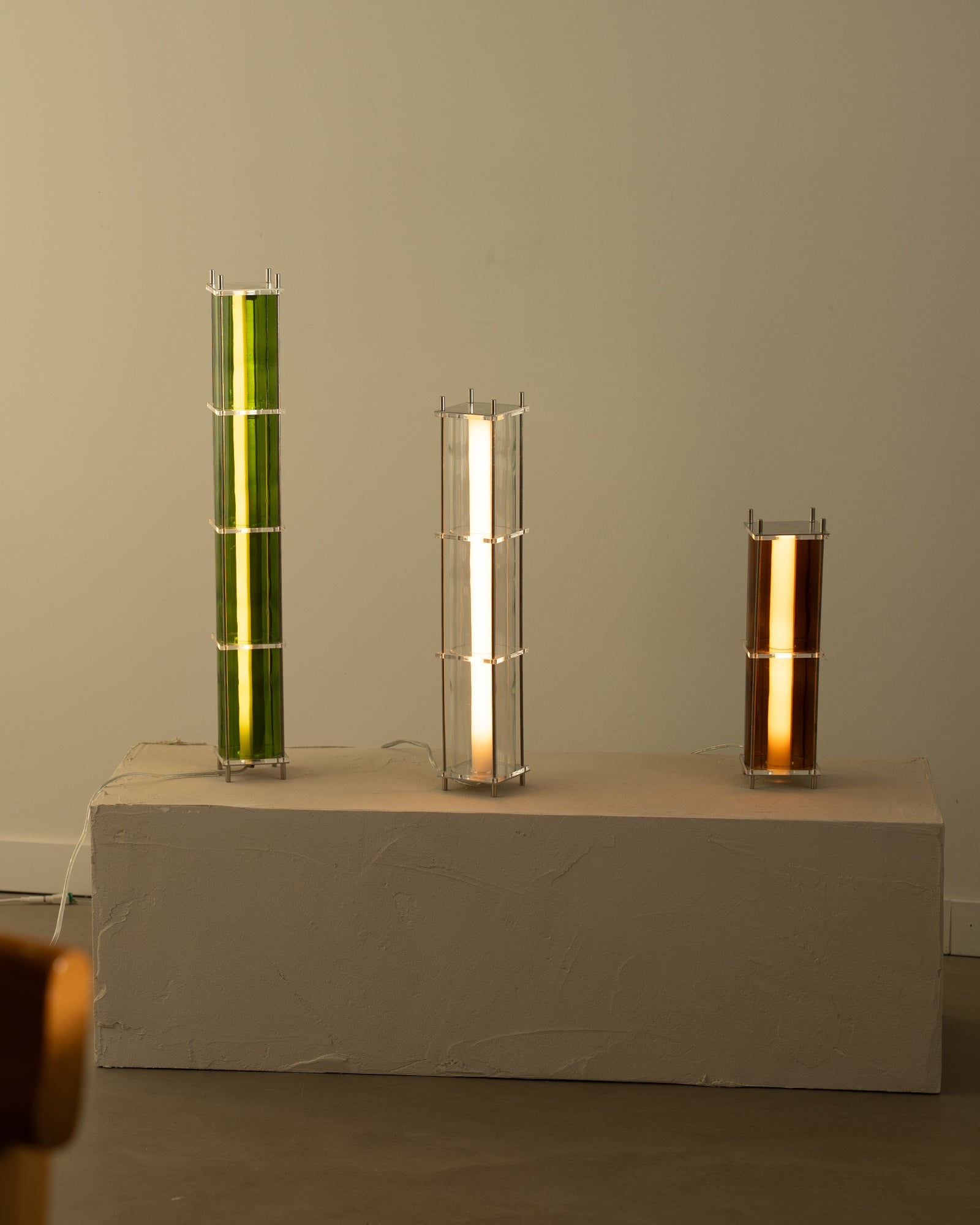 In the QDB Editions workshop, the duo's initial intentions give way to the first experiments. The bottle is cut into cylinders that are superimposed and the natural constraints of the material are confronted to better push them back. The excitement is palpable; reinterpreting glass to better sublimate it is, after all, what initiated the meeting between QDB Editions and Théo Charasse.
