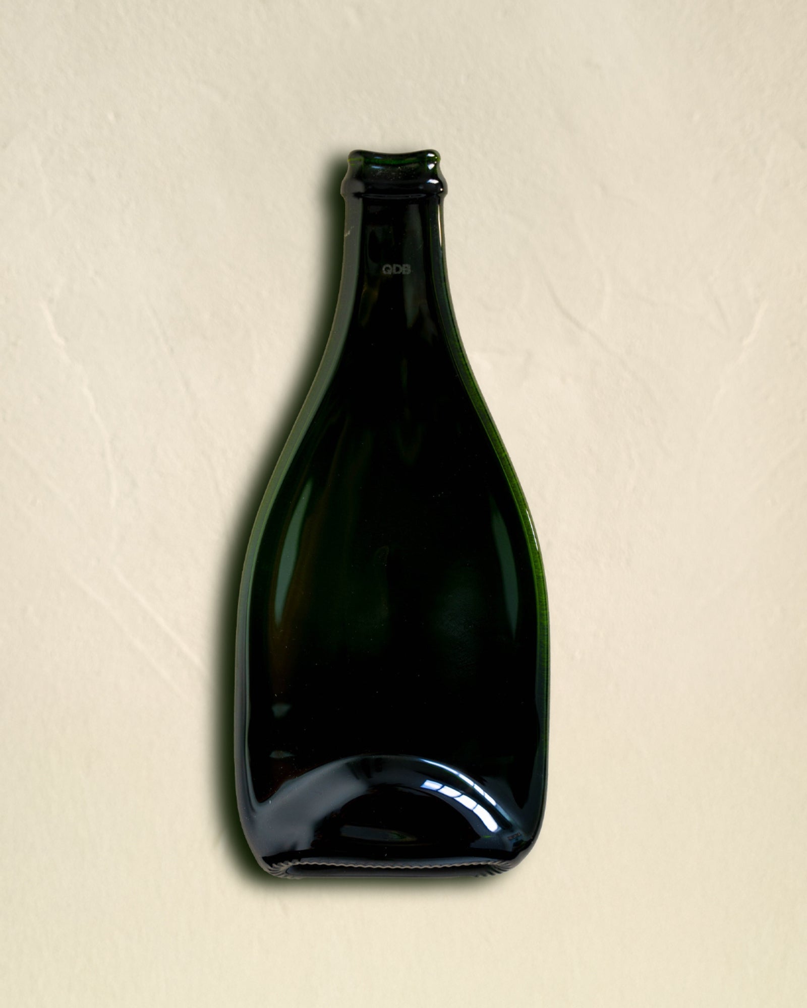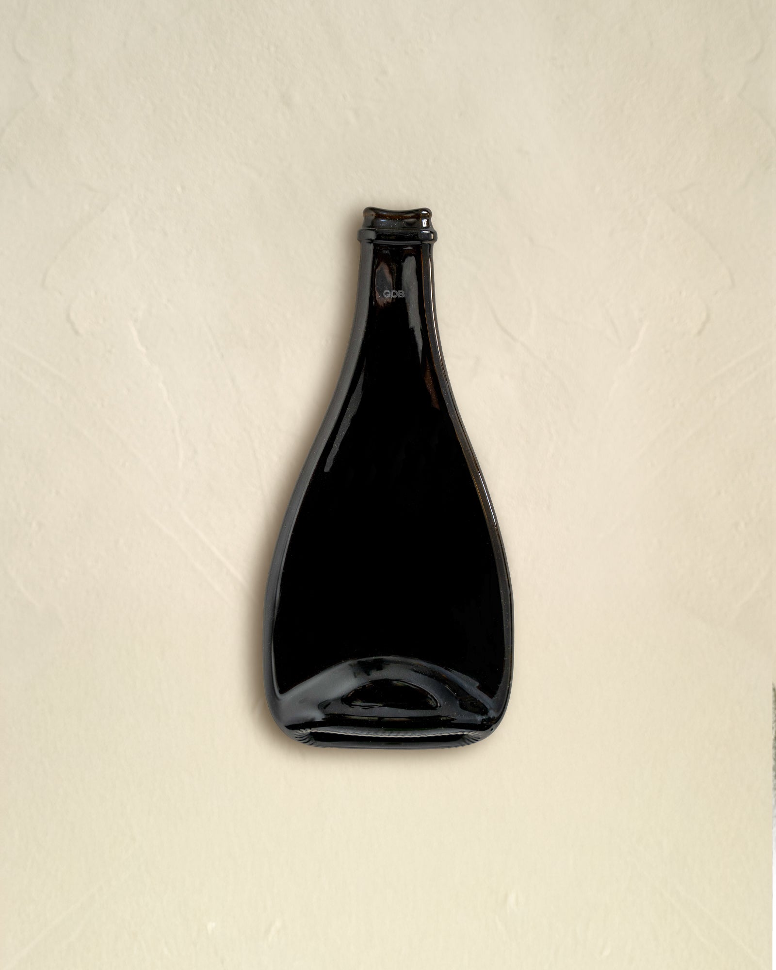 The vase and the appetizer board are crafted from a champagne bottle, from a vintage called Grand Soir. The original thickness of this bottle explains the darker hue.