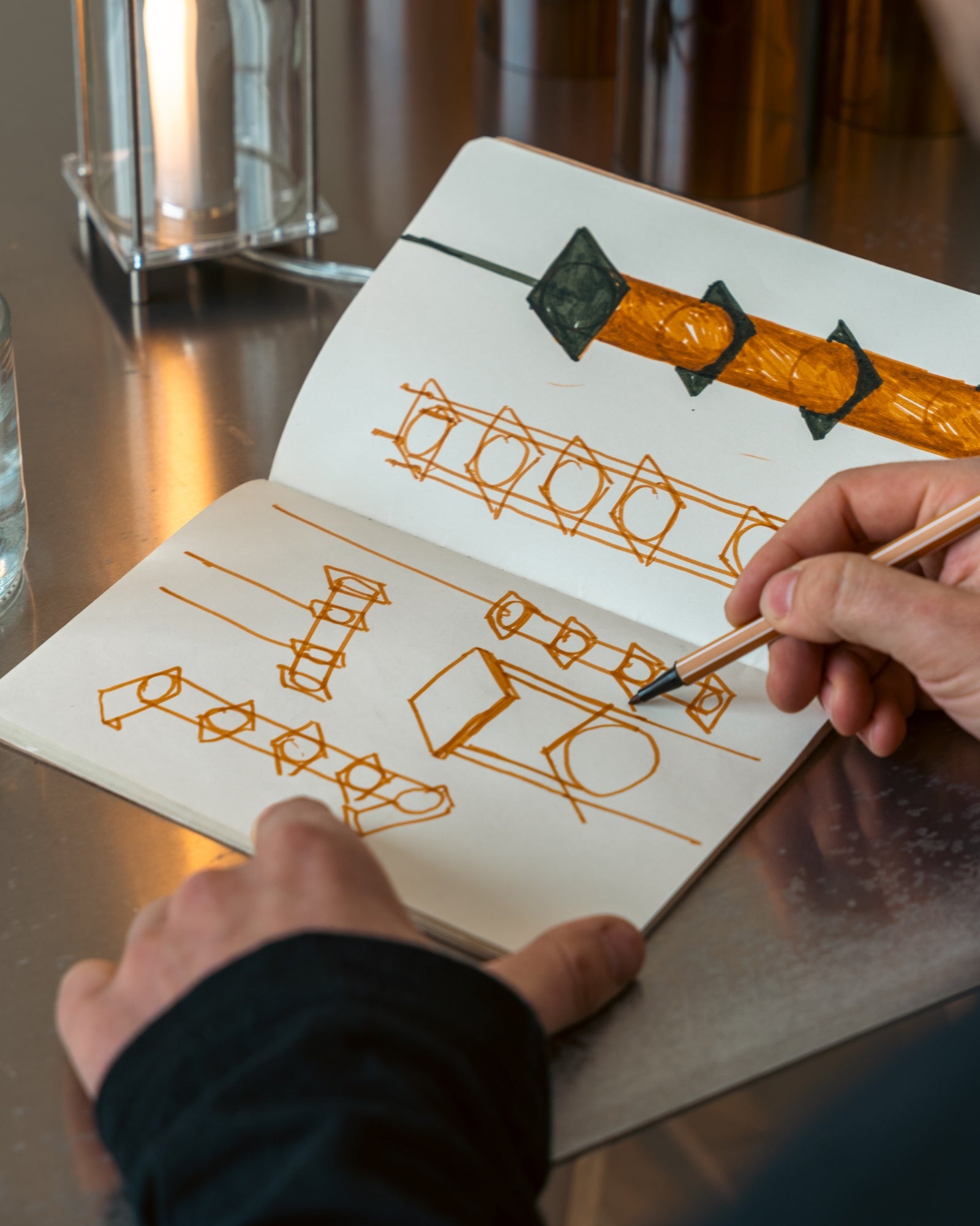 At the beginning, there was the glass bottle. Shaped into tableware and decorative objects at QDB Editions, sketched into lighting by Théo Charasse from 2023.