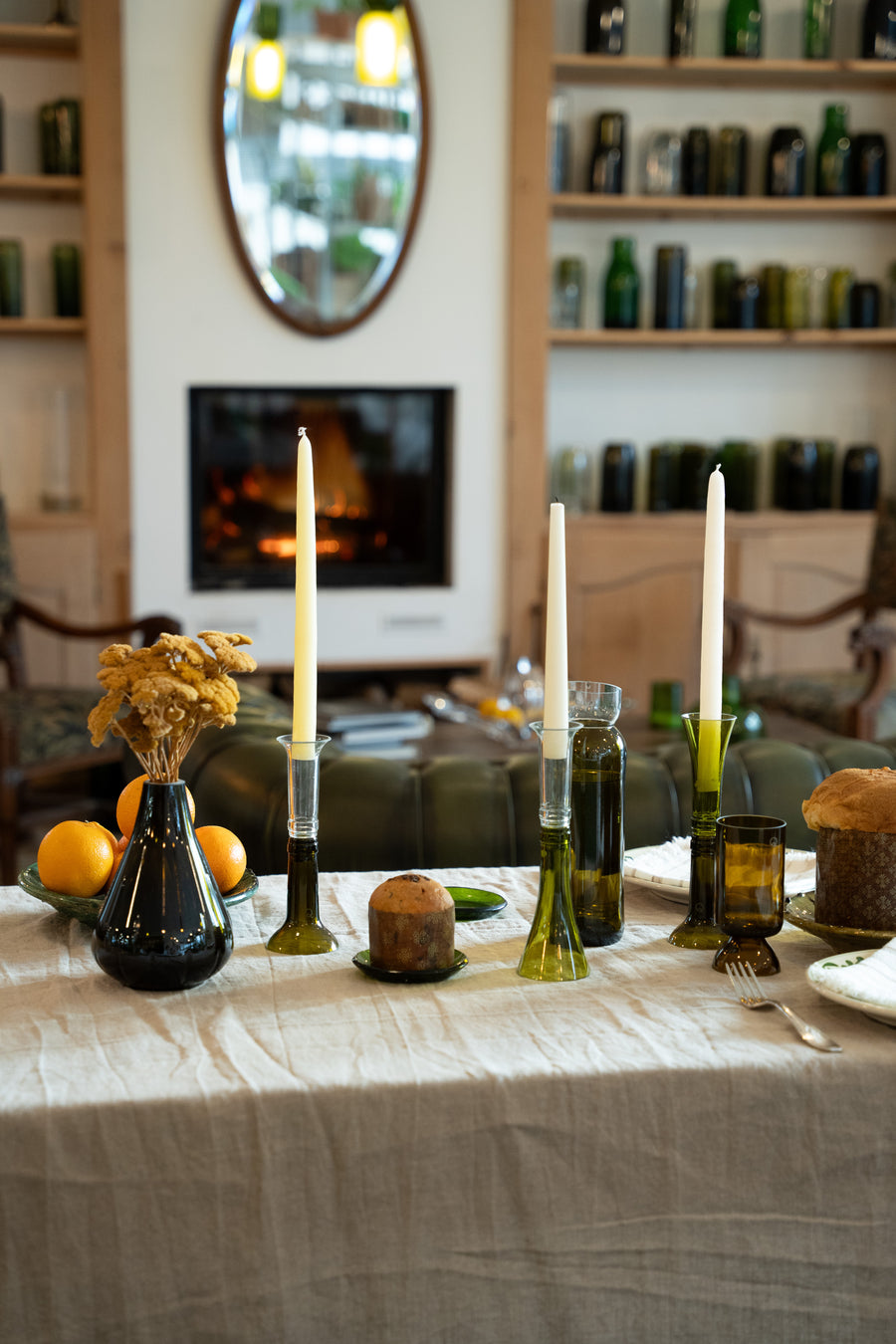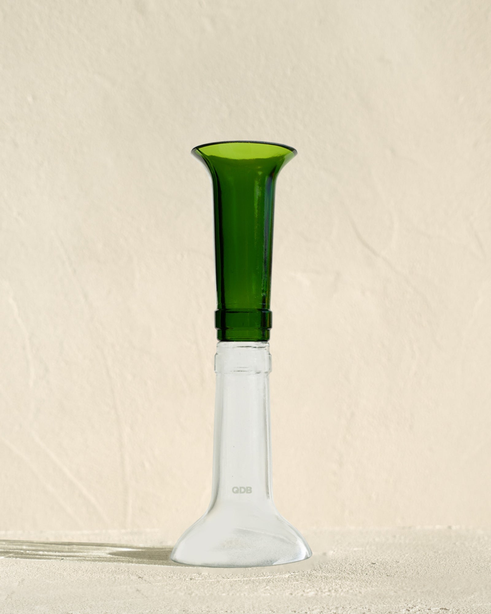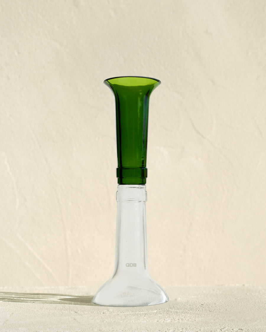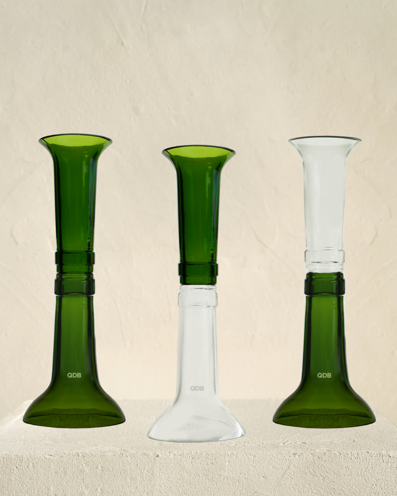 Ce set de 3 bougeoirs célèbre la couleur originelle de la bouteille. Le vert se joue en miroir entre deux chandeliers et s'applique en uni sur le troisième.