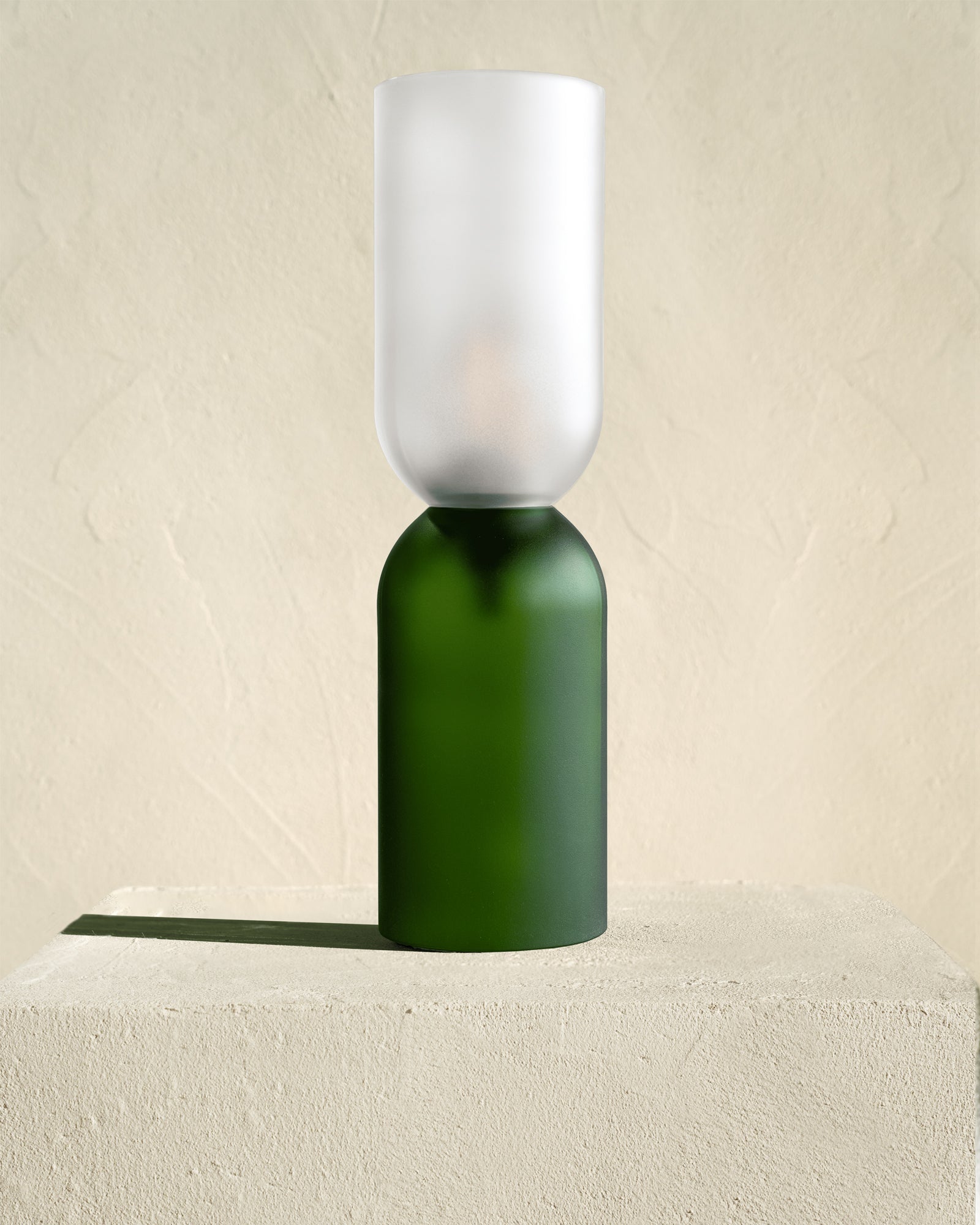 Sous son apparente simplicité, cette première édition artisanale naît de gestes précis. De nombreuses étapes de fabrication sont nécessaires pour donner naissance à cette première collection de lampes à poser : Chaque lampe est façonnée à partir de magnums de vin recyclés, puis assemblée à la main dans notre atelier sur la Côte d’Opale. De cette transformation naît une forme sablier, fruit de l’assemblage délicat de deux cloches de verre aux teintes contrastées. Sablées par l’extérieur pour diffuser une lumière chaleureuse et tamisée, les cloches sont ensuite passées au four pour obtenir un rendu satiné. Le résultat : une pièce unique qui sublime la transparence et la matière du verre recyclé.