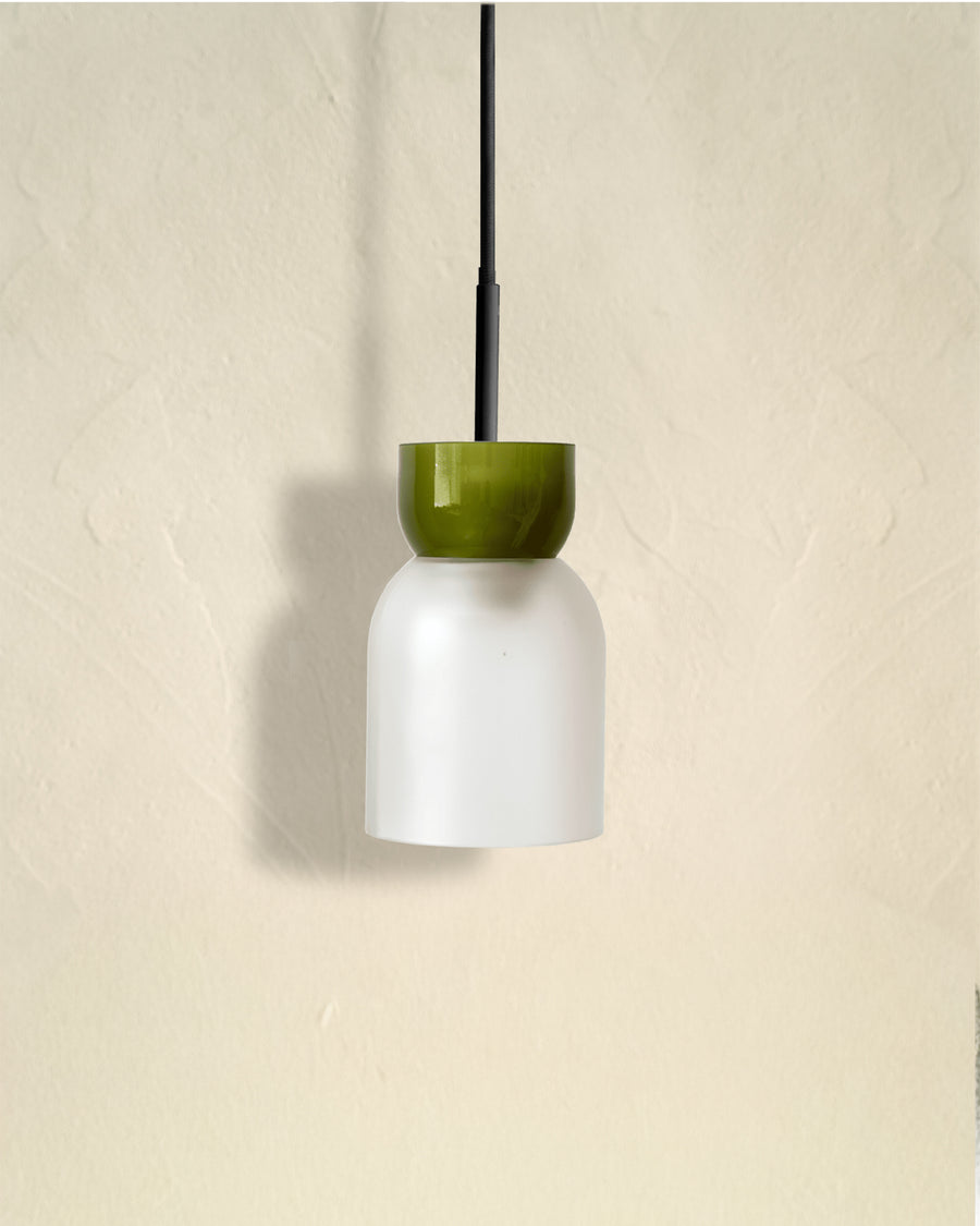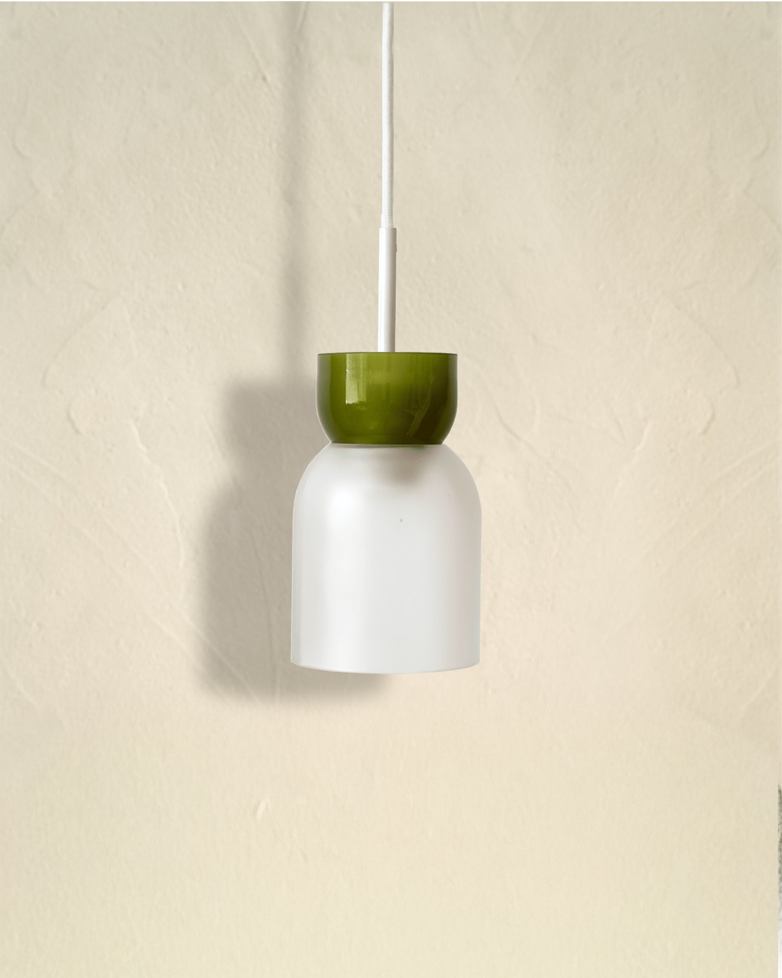 Comme une extension de la lampe à poser, cette première collection de suspensions se décline en 6 modèles unis ou bicolores (2 tailles, 3 coloris).