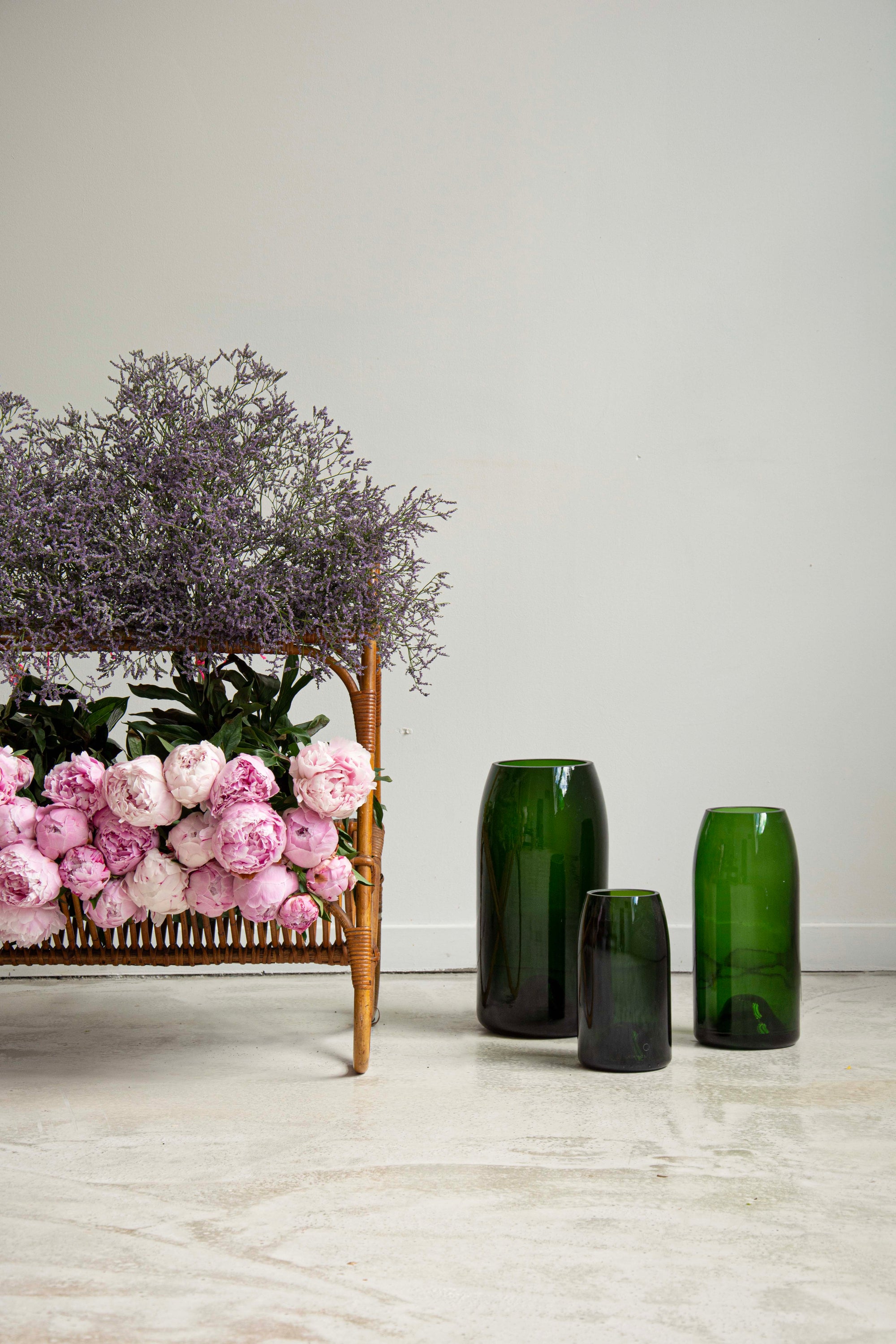 Chaque vase est fabriqué à partir d'une bouteille en verre surcyclée dans notre atelier du Touquet, par notre équipe d'artisans verriers. De ce fait, chaque pièce est unique. Des variations de couleurs peuvent exister entre les vases d’une même gamme dû au caractère artisanal du produit.