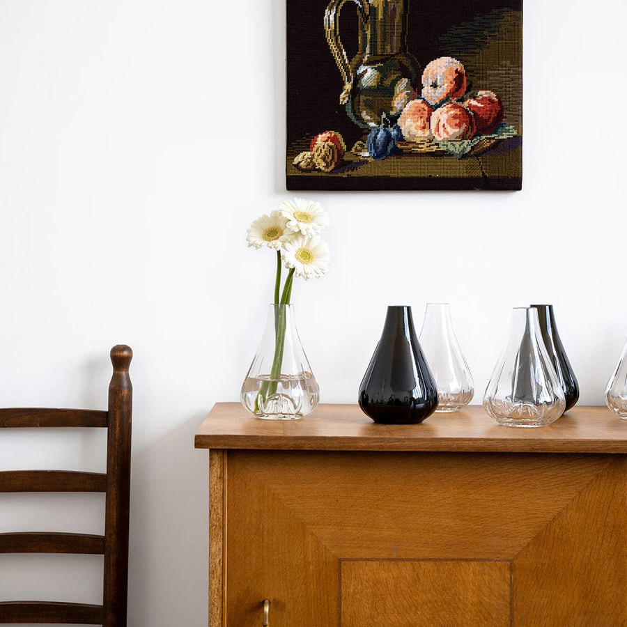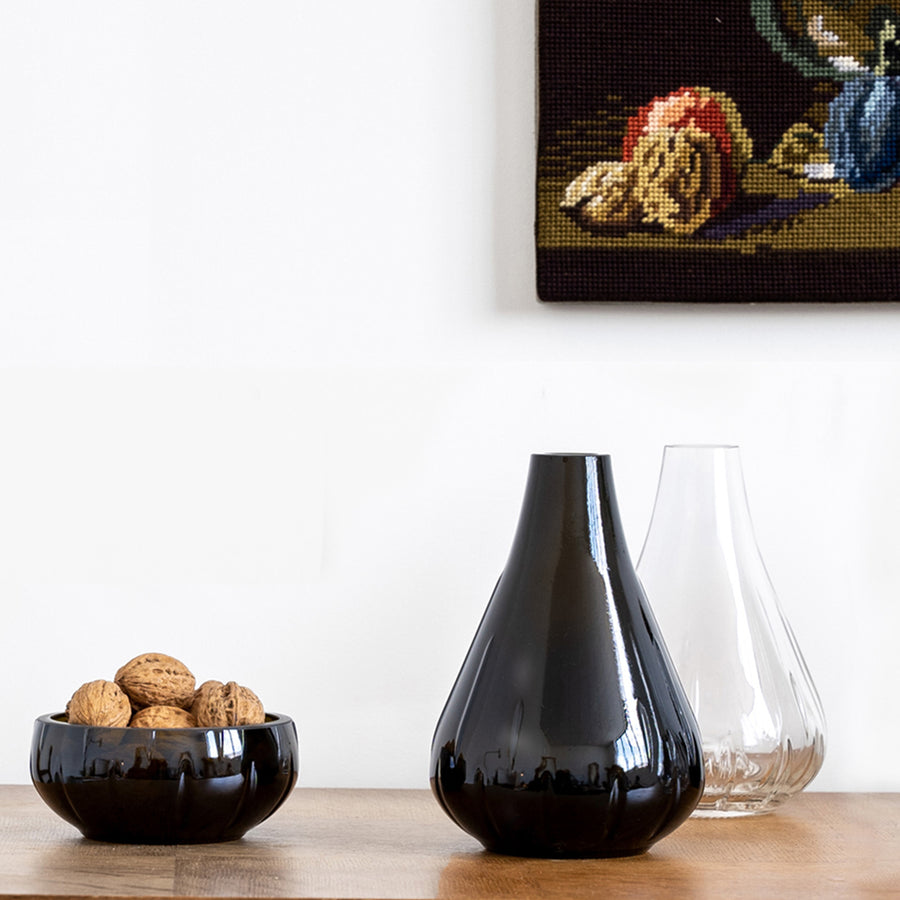La durabilité est au cœur de cette collaboration : les bouteilles vides sont récupérées et transformées en vases, en bols et en chandeliers, définitivement prêts pour une seconde vie.